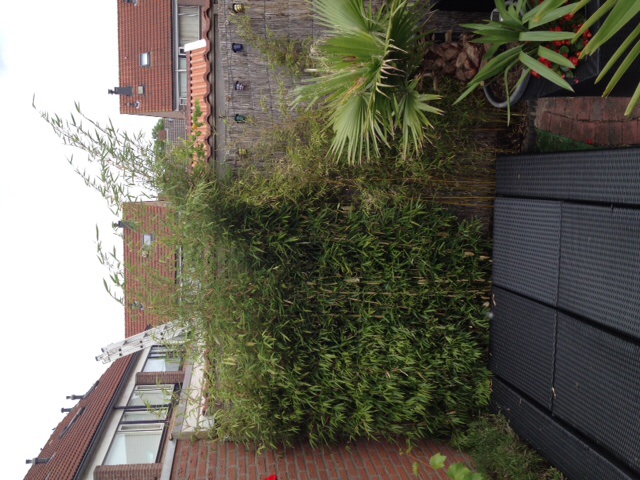 In de border heb ik een aantal jaren geleden kleine Fargesia stekjes geplaatst en nu heb ik daar een beetje spijt van gekregen. Onze buurman heeft een nieuwe dakkapel gekregen en ik wil nu meer privacy in de tuin. Ik wil het nu alleen houden bij de Fargesia 'Robusta omdat die als enige bamboesoort van Fargesia wel 6 meter de lucht in kan schieten.