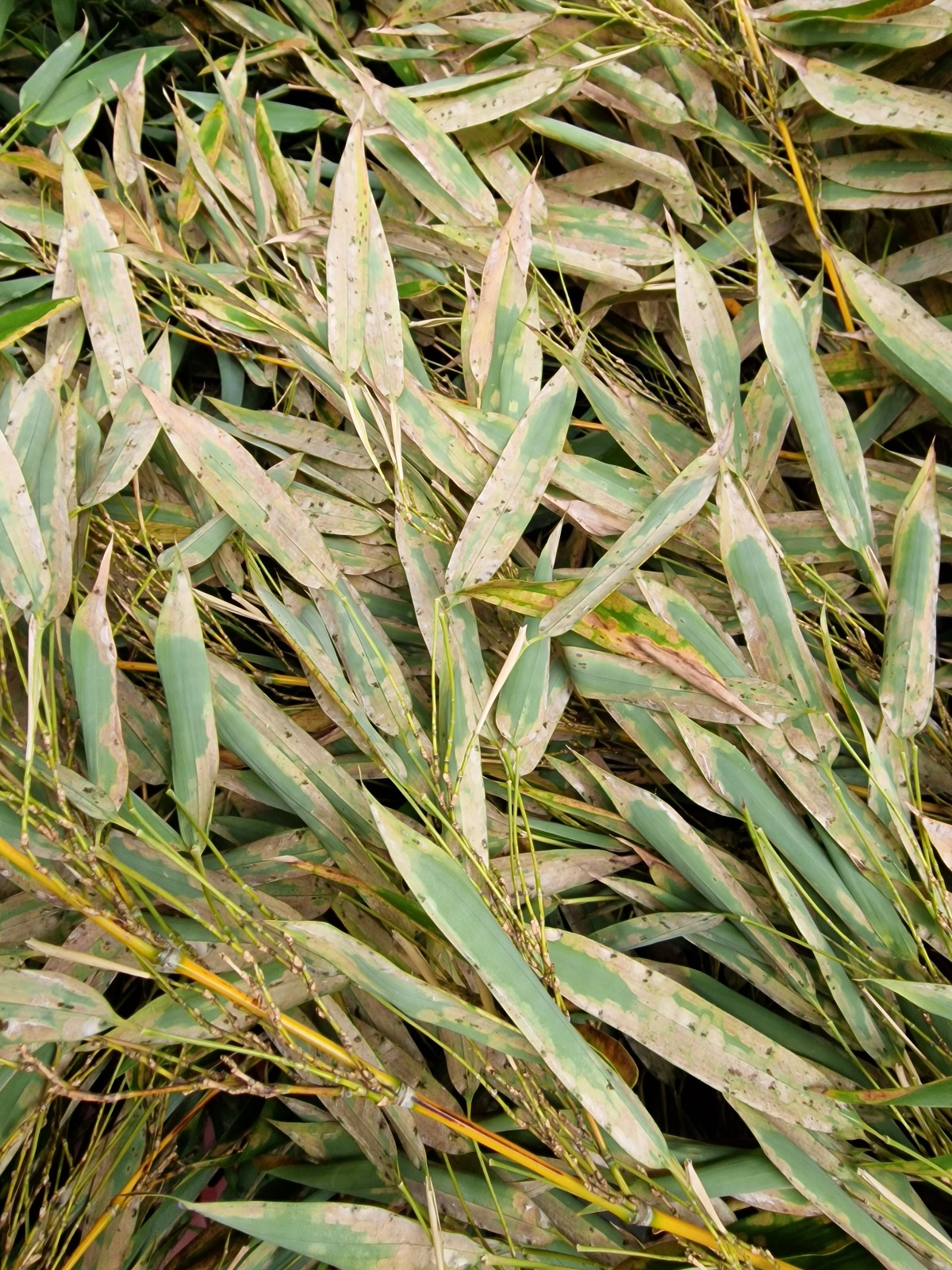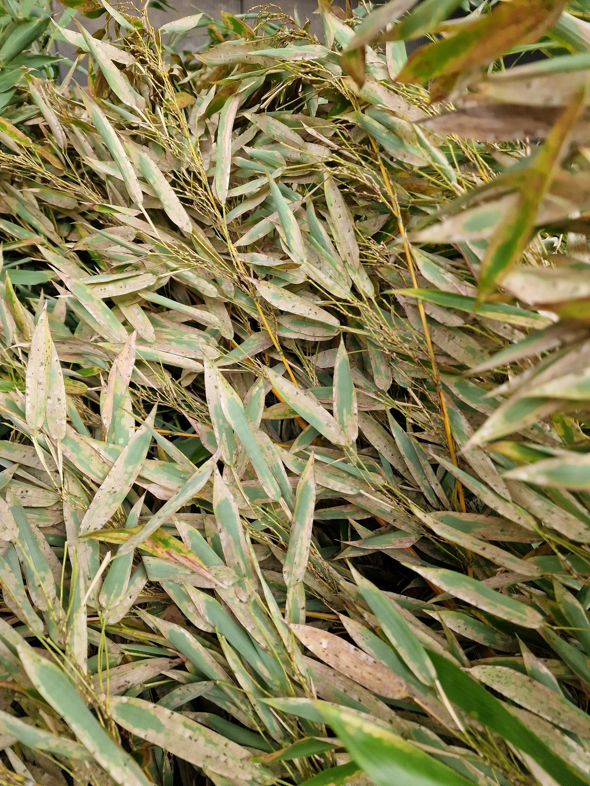 De mijt heeft goed huisgehouden in een vrij korte tijd en mijn mooie phyllostachys bos heeft een 80% bladschade. De Fargesia soorten wel wat minder maar ook die zijn aangetast