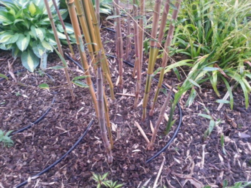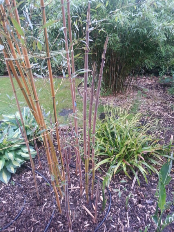 Zoals je ziet is de Phyllostachys vivax juist vertrokken terwijl de P. aureosulcata "spectabilis" een serieuze voorsprong heeft.