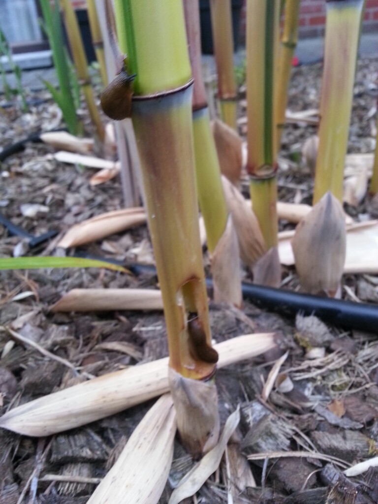 oohh, wat zonde , wist niet dat slakken zo erg waren ?? heb ze ook wel in de tuin, maar nooit in me bamboe`s gezien dat ze daar aan knaagden ?