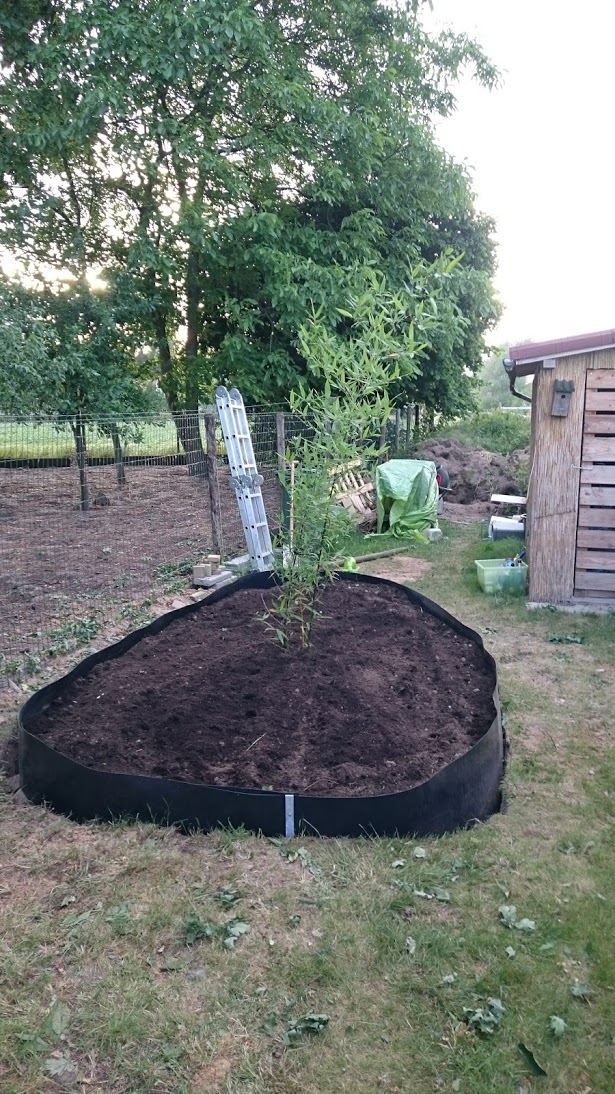 Zo, hij staat er eindelijk in :) nu ga ik nog een borderke voorzien (ze hadden van die rollekes hardhout in de gamma) en cocos pellen als bodembedekker.