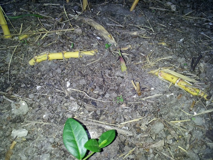 hier is alles nog rustig, nog geen nieuwe punten zichtbaar van de atrovaginata, wel lopen de nieuwe bladknopjes uit, dus de groei boven de grond is wel zichtbaar, eigelijk is het nog te koud voor het jaar gemiddelde, dus mogelijk pas begin volgende maand het bamboe feest hier