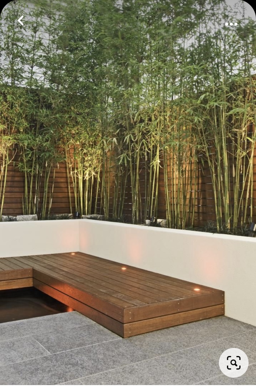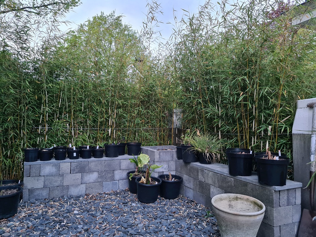 Bamboe op de foto zijn net aangeplante exemplaren (alles voor het mooie plaatje), maar uiteindelijk groeit ie wel dichter.