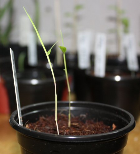 1) de zaden op vochtig neem-coir gelegd en het zaaipotje afgedekt met plastic folie. Deze zijn in de propagator gezet.