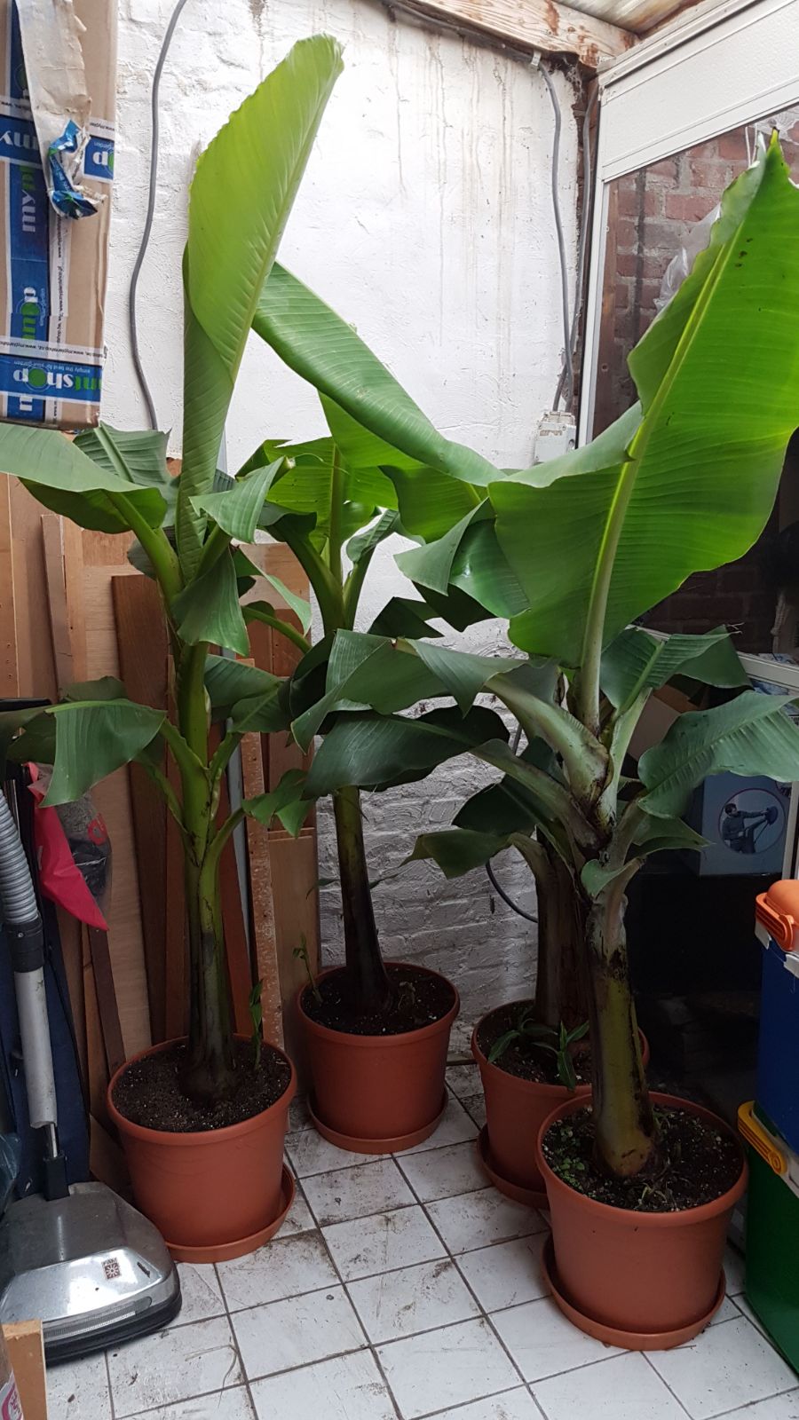 Ik heb de bladeren op 4 November ingekort en binnen plaatsbaar gemaakt. 80 en 85 cm stam met blad jongens van 180cm :).