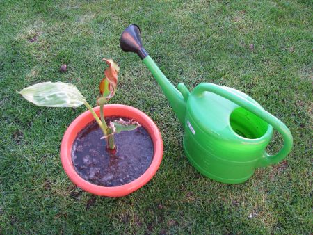 De plant wegzetten op een zonnig plekje.