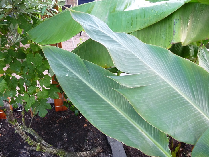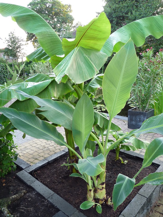 Op de foto zie je mijn nieuwe aanwinst voor de grote musa basjoo staan. Het blad is grijzer en zachter dan dat van de basjoo. Wie kent deze banaan en klopt het dat deze net zo winterhard is als de basjoo?