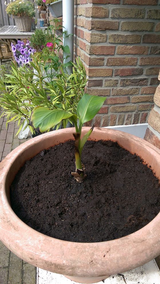 Begin april heb ik 2 bananen aangeschaft waarvan 1 in zeer slechte staat verkeerde, deze heb ik daarna zonder wortels in een pot geplant, na 3 maanden goede verzorging is deze plant weer helemaal opgeknapt, sterker nog hij doet het beter dan de plant die wel geworteld was!