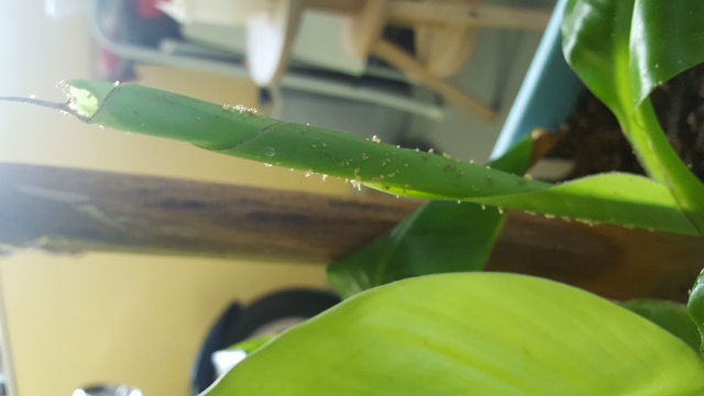 Sinds een paar dagen zijn witte beestjes verschenen op de musa velutina. Ik heb veel gelezen over beestjes op de musa maar wil graag zeker weten of dit inderdaad spint is of een andere soort luis. Ik hoop dat iemand dit kan bevestigen adhv de fotos.