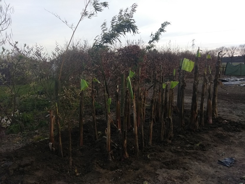 Gisteren en vandaag de Basjoo's in de volle grond gezet, want ze beginnen goed te groeien.