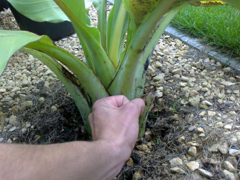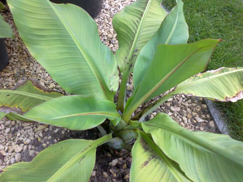 De plant maakte veel bladeren aan, maar de stam bleef klein in verhouding met andere Ensete's.