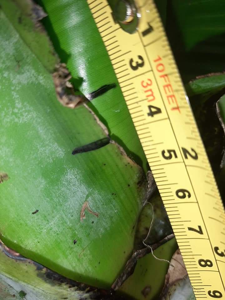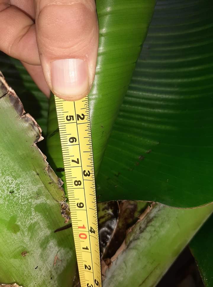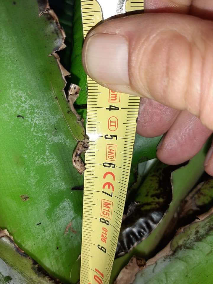 Helaas heb ik niet de exacte maat van de speer voordat ik weg ging. Je ziet dat het blad dus in 1 maand nog niet was uitgerold. En groei was zo goed als gestagneerd in die maand.