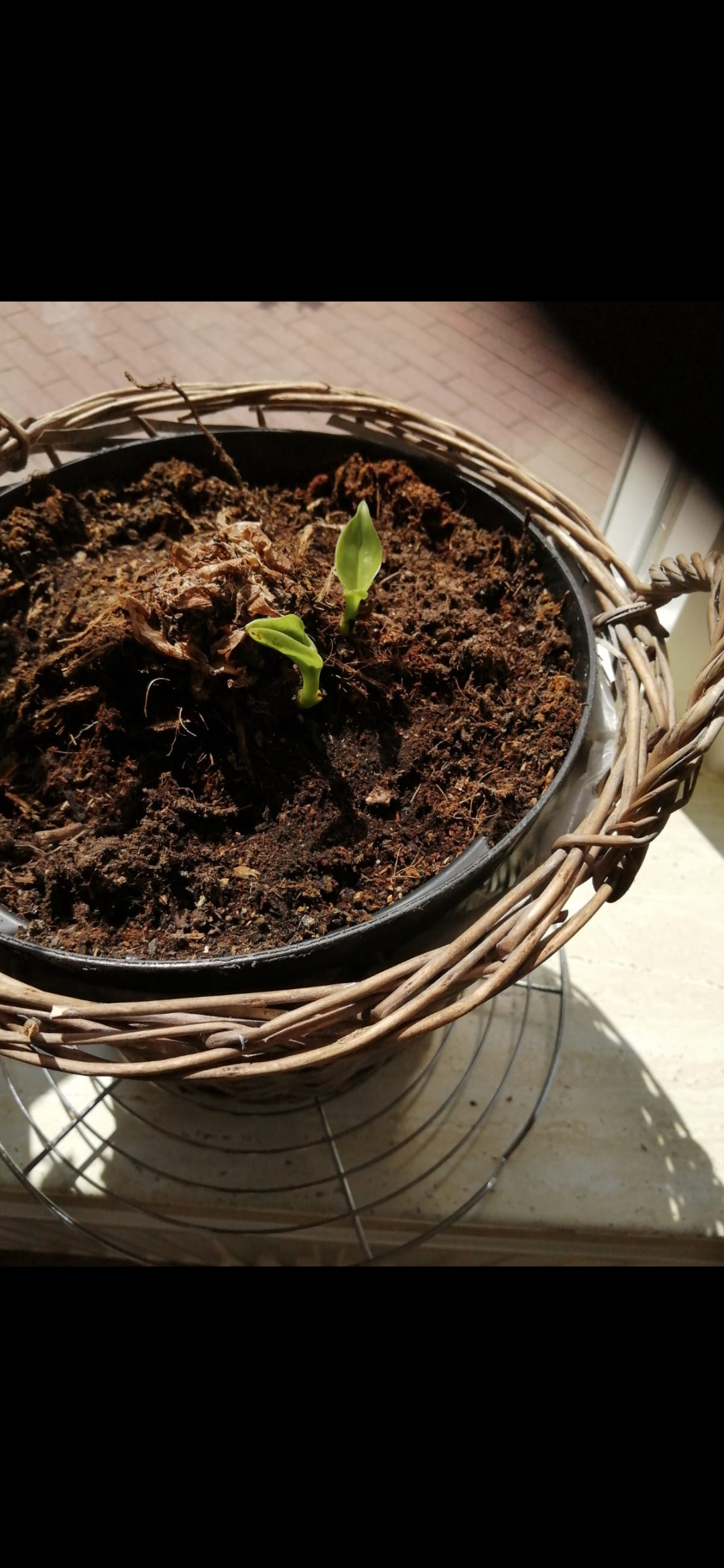 Ruim een jaar geleden mocht mijn moeder een plant uitkiezen bij de postcode loterij. Ze had toen voor mij voor een bananenplant gekozen. Ik had me er toen nog niet zo in verdiept en hij is uiteindelijk dood gegaan dit voorjaar aan spint of wortelrot (ik had geen gaten onderin de bak). Ik heb toen de stam helemaal tot de grond afgesneden en rizoom toen in nieuwe grond gezet in een kweekpotje. Nu komen er 2 pups omhoog die hun eerste blaadje eruit hebben, maar ben nu eigenlijk wel benieuwd wat ik nu straks voor plant ga grootbrengen haha.