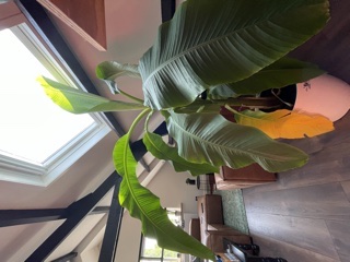 Zijn huidige standplek is denk ik te donker voor een banaan, en dat veroorzaakt ook het wat hangende blad m.i.