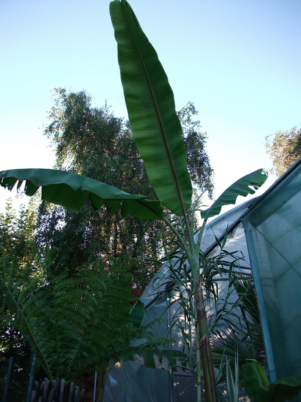 De foto is van een paar maanden geleden , de banenboom is ondertussen al weer groter geworden.