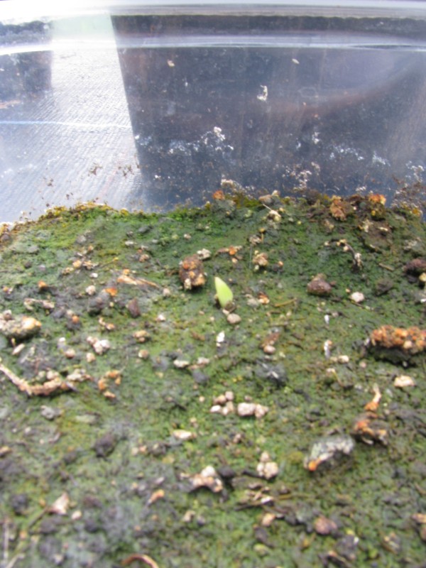 Ik heb het al eens meermaals geprobeerd, maar de combinatie bananenzaden en Robbin lijkt niet goed te passen. Palmzaden ontkiemen verlopen hier een stuk beter, zo begint de T.princeps hier ineens massaal te kiemen..