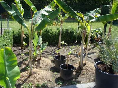 musa sikkimensis en balbisiana, de itenerans maakt ook dikke scheuten aan net zoals de musella