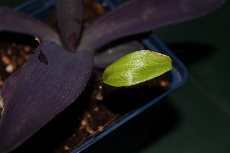 en heb de zaailing bij een stek geduwd van een tradescantia pallida purpurea.