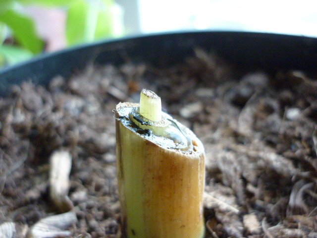 @Bol, het dikste deel kan ook uitdrogen en krimpen waardoor het nog niet uitgedroogde binnenste verschijnt. Het lijkt dan nog even alsof er leven in komt. Je kan natuurlijk wel geluk hebben, heb je ondertussen nog meer groei?