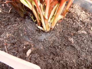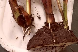 heb nu groot gedeelte voorzichtig losgemaakt van de stam soms met 3 wortel enkele met 1 wortel . Heb ze gepot en ze groeien.