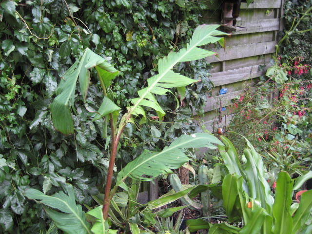 ze worde maar ong een meter tot anderhalf. op de 2 laatste fotos zie je links musa sikkimensis manipur 1.80 M (ik denk dat het tog een gewone sikkimensis is want hij heeft geen strepen) en de ensete maurelli staat er tusse en een basjoo.