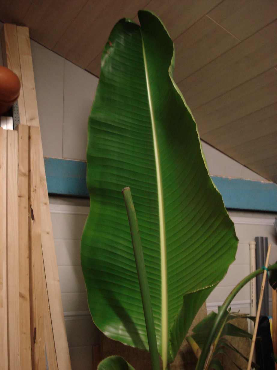 Vorig weekend mijn Strelitzia nicolai's naar binnen gebracht, de kleinste in de woonkamer en de grootste in de winterberging (garage). Van die laatste stond er een nieuw opgerold blad klaar en gisteren was het zover, het grootste én hoogste blad tot nu toe op eender welke plant die ik al heb gekweekt, gewoon indrukwekkend :P