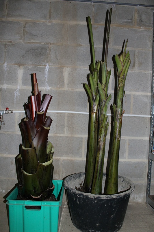 Ik heb vorig jaar een musa yunnanensis binnen overwinterd. Toen ik deze in mei terug buiten gezet is deze met de eerste storm geknakt.