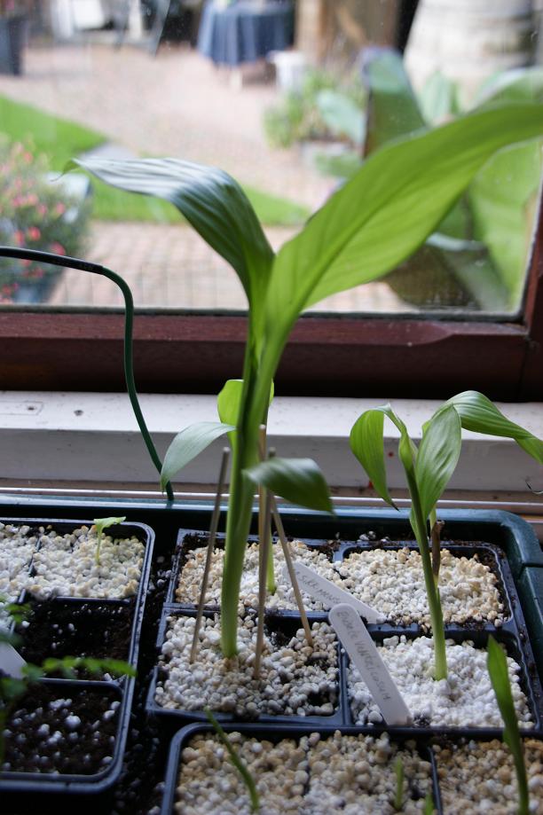 Hoelang duurde het bij jou voor de zaailingen begonnen te kiemen. Bij mij kwam er eentje zeer snel op (na twee weken al) maar de andere laten nog even op zich wachten. Guus (van canna banana) vertelde me dat het tot 2 jaar kan duren voor deze soort kiemt. Hij zei zelfs dat het bij de E glaucum tot wel 3 jaar kan duren! :shock: