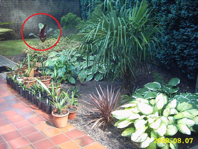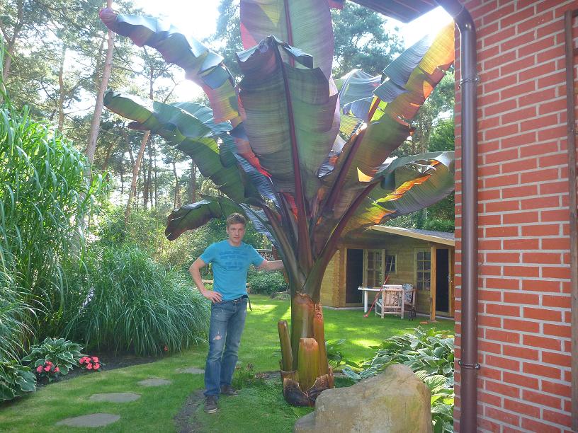 in de zomer van 2009 zijn alle bananen,hostas enz. verwoest door een nooit geziene hagelbui. Tegen half september hadden de bananen toch weer een paar mooie bladeren aangemaakt.