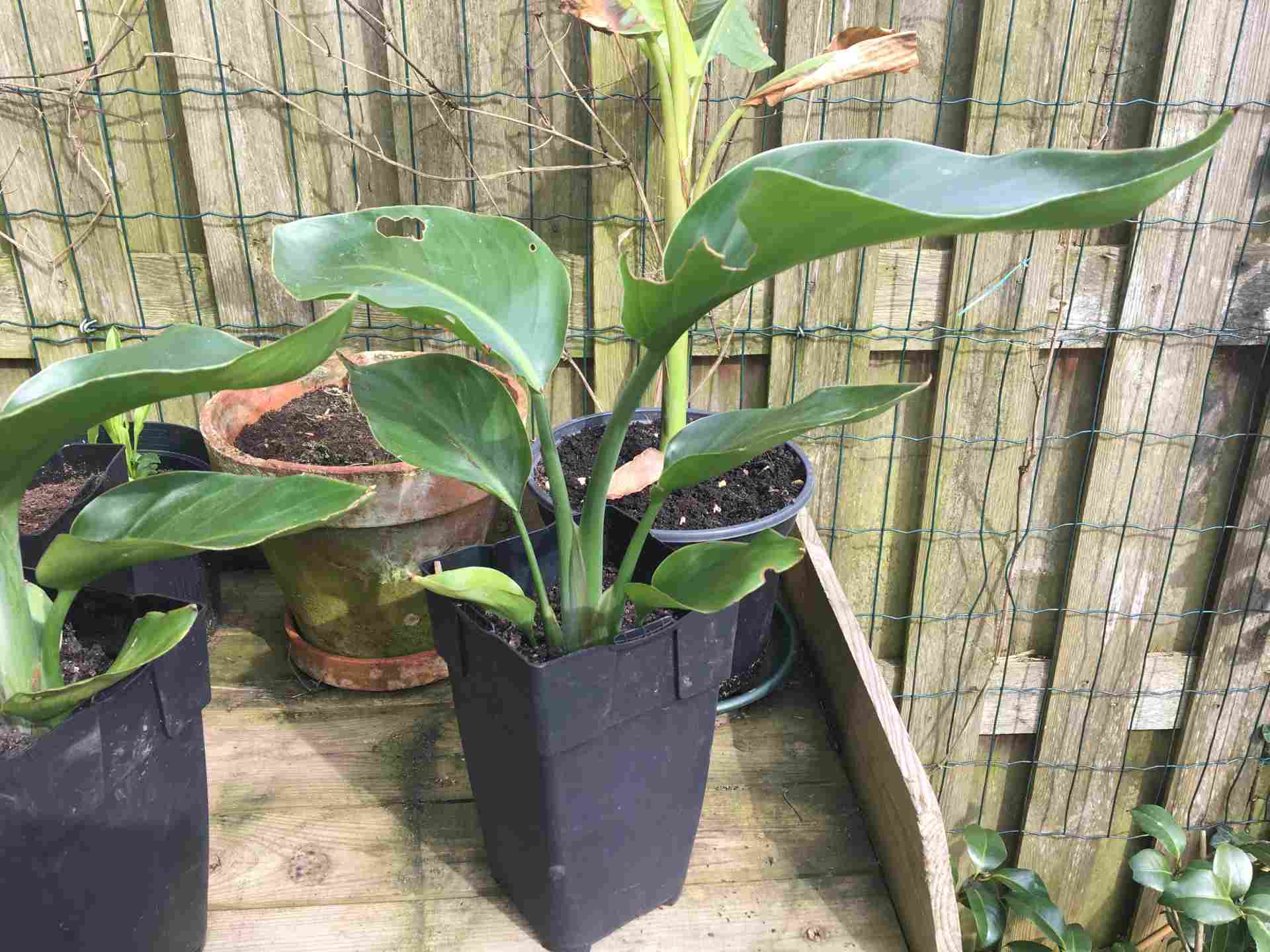 Ik had ze voor "mijn proef" twee in een (te) grote aardewerkglazurenpot bij elkaar samen verpot en twee los/apart in de kunststof zwarte hoge potten gelaten waar ze vorig jaar in zijn gegaan.