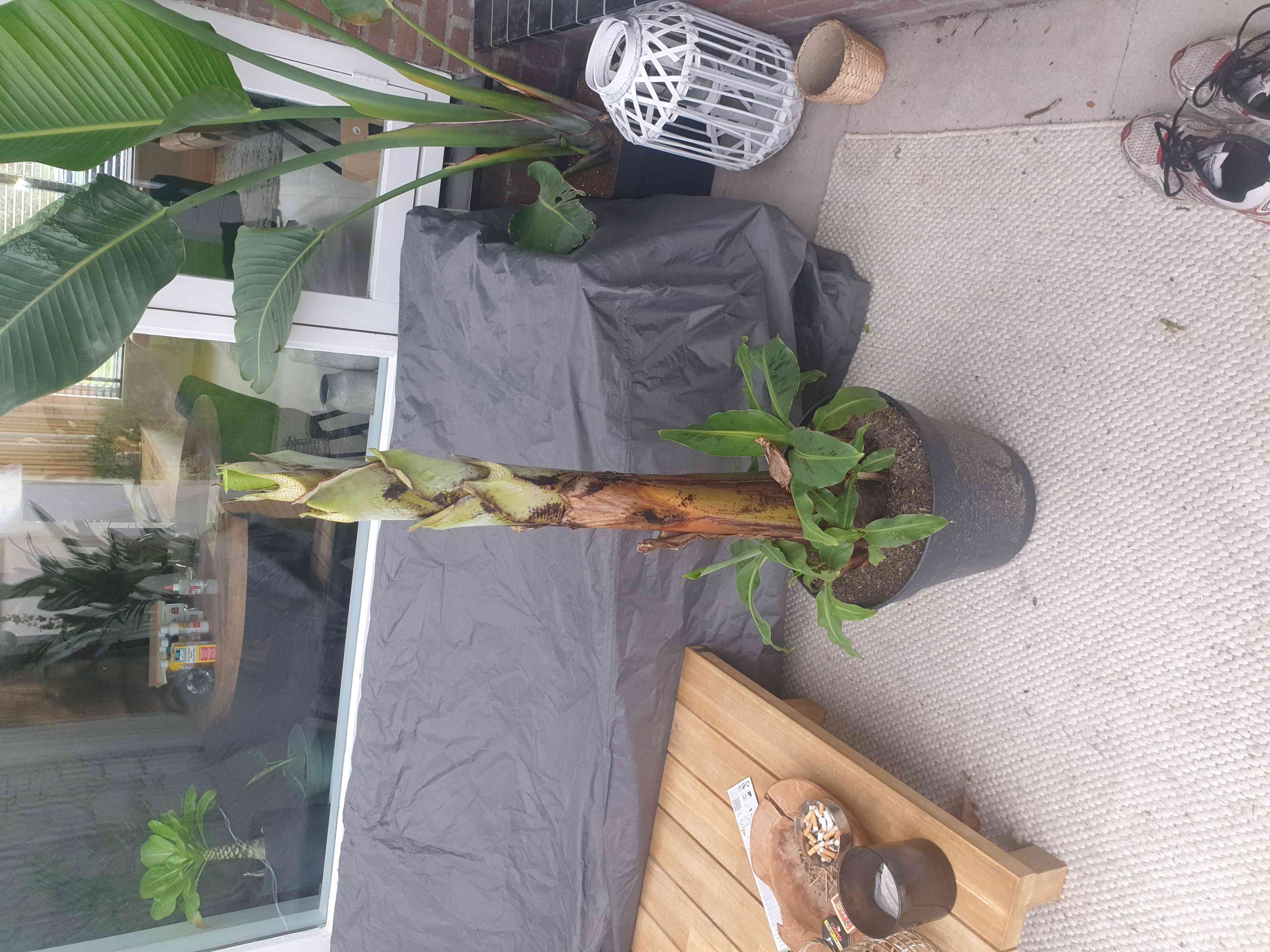 De kleinere musa die je achter ziet staan ga ik alle bladeren van verwijderen zodat alleen de sigaar over blijft en deze dan donker op ongeveer 15 graden wegzetten.
