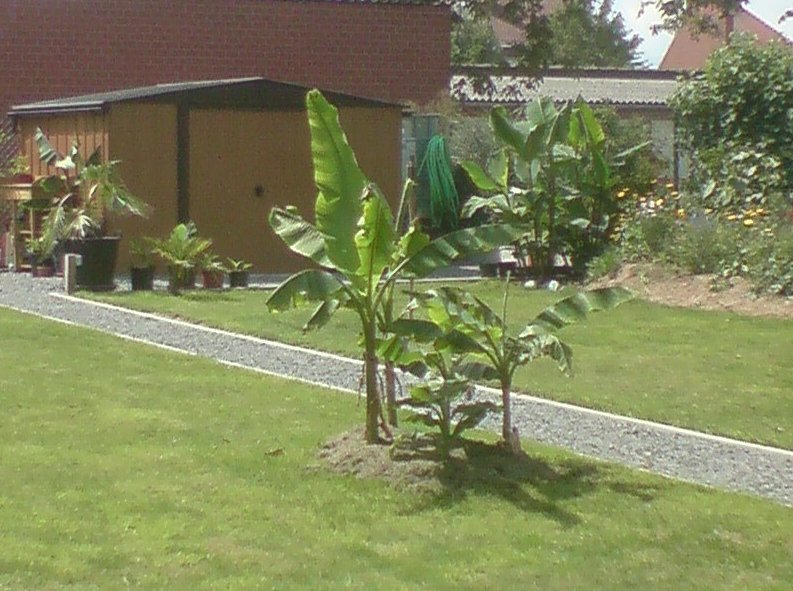 We zullen de resultaten van het gras niet echt dit jaar weten (denk ik), uiteindelijk is het al augustus. Mogelijks probeer ik het volgend jaar eens met 2 kleine musa's, eentje met en eentje zonder gras.