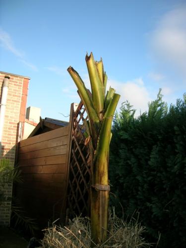 Geen paniek weliswaar: de wortelstok kan temp tot - 20 aan... en loopt terug uit. Ik opteer echter niet voor die optie omdat je dan nooit bananen kan krijgen en vooral om dat ik dan ieder jaar start met een stam van 2 meter! Bovendien wordt hij steeds dikker wardoor hij dus een graadje vorst kan verdragen (hoogstens de buitenste laag is dan bevroren maar die valt er dan af in de zomer)