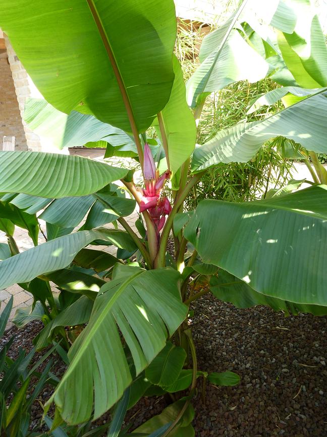 Momenteel heb ik een Musa sp. royal purple in bloei staan met ook zo'n zelfde mooie paarse bloem. Het is mijn tweede keer al want afgelopen winter stond de andere stam in bloei.