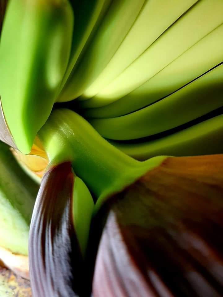 Zoals ik al eerder zei, krult het schutblad op naarmate de banaantjes als een laadklep langzaam naar boven buigen.
