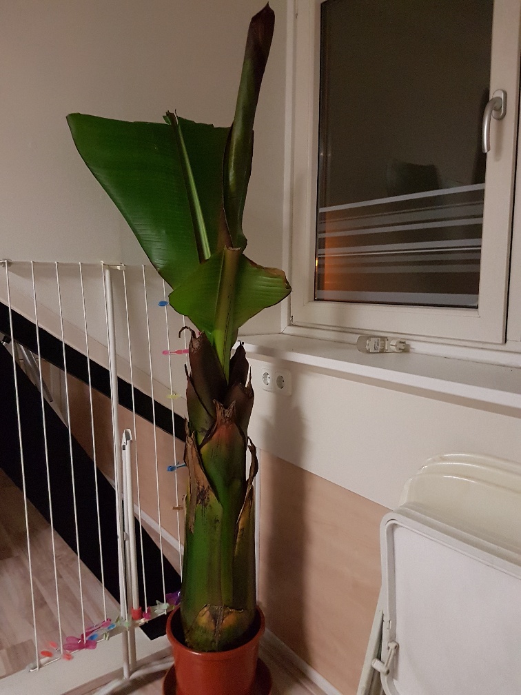 hanscazan schreef:Besmetting met het Ensete virus op 31mei2017 gestart met een dikke stam palmshop, amper te zien, nu 260cm en "stamomtrek" 65 cm.