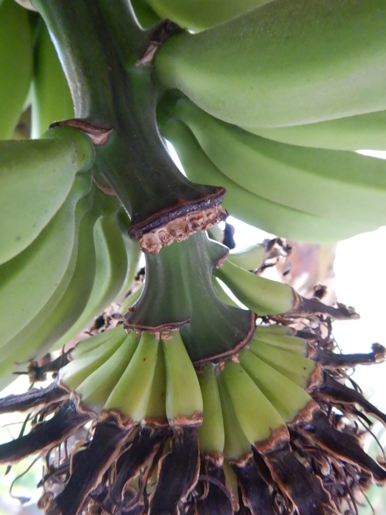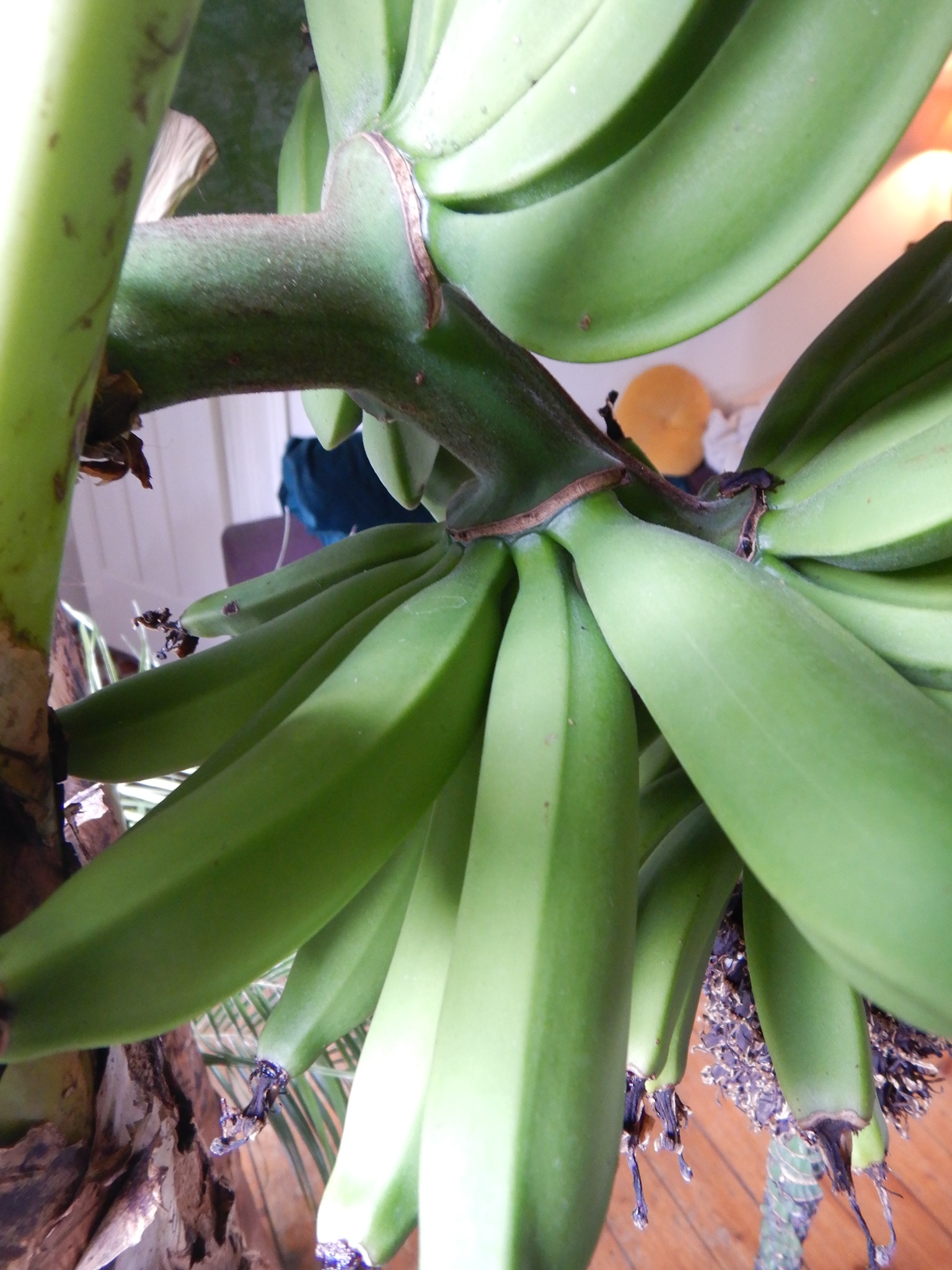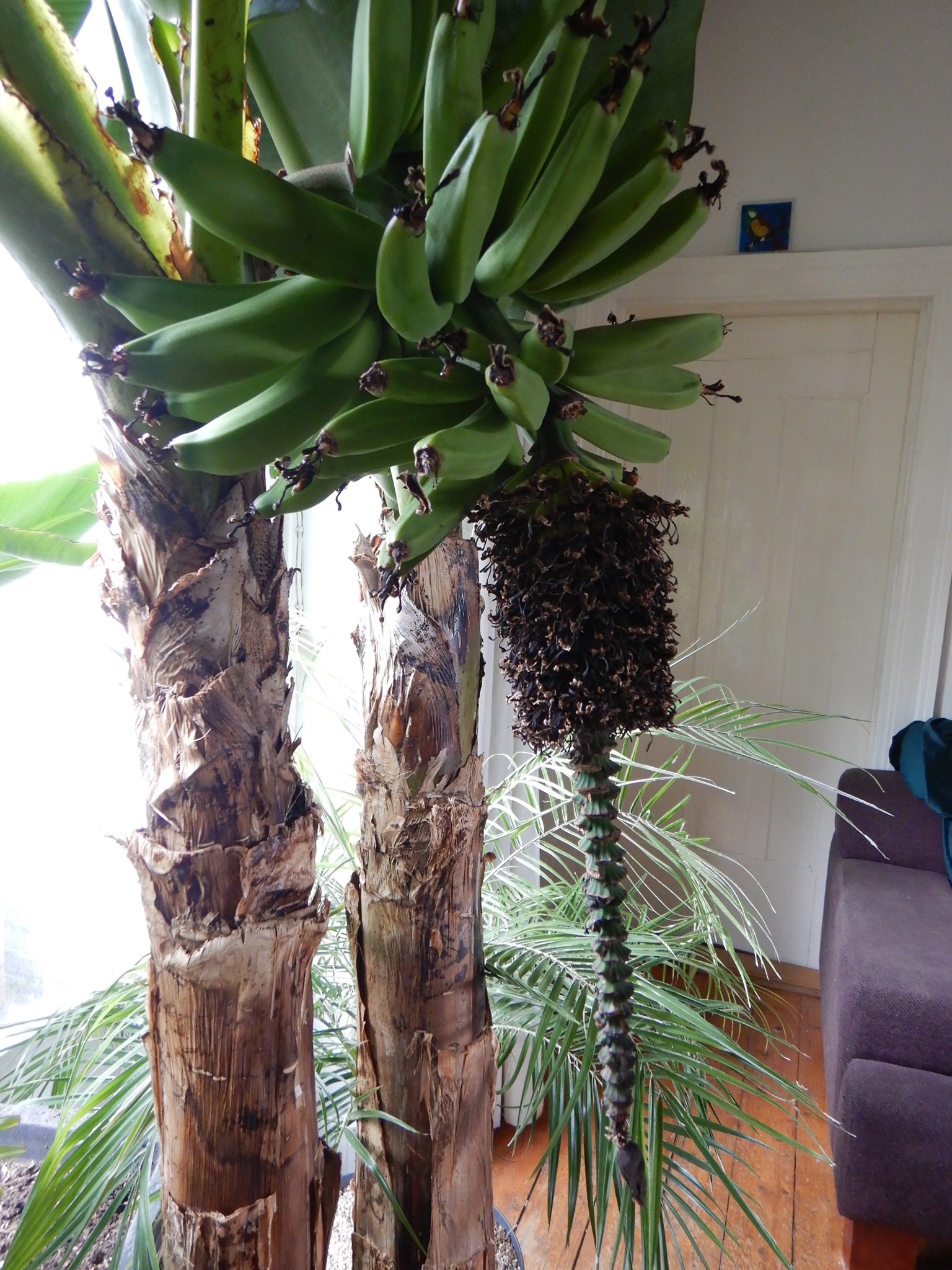 Interessante bevinding en vergeleken met mijn vorige tros bananen die allemaal gelijkmatig rijpten, is het met bloem eraan toch anders gegaan, reden: energie verdeling ?