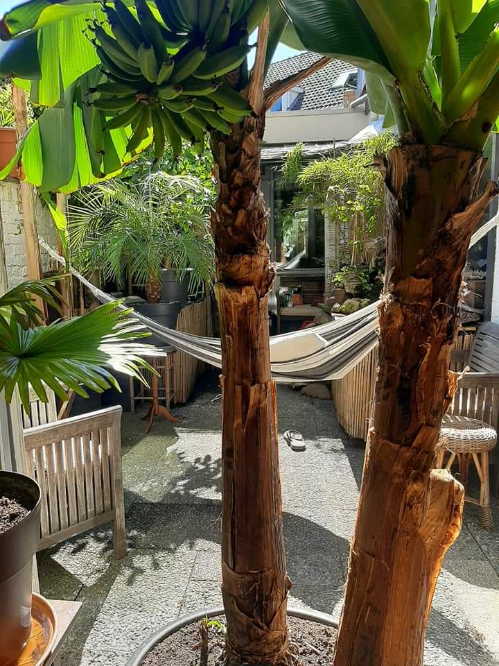 Op de foto zie je de lente van 2019, waarbij ik 1 Cavendish flink heb moeten snoeien, zat echt diep verstopt, maar overleeft :thumb_up: