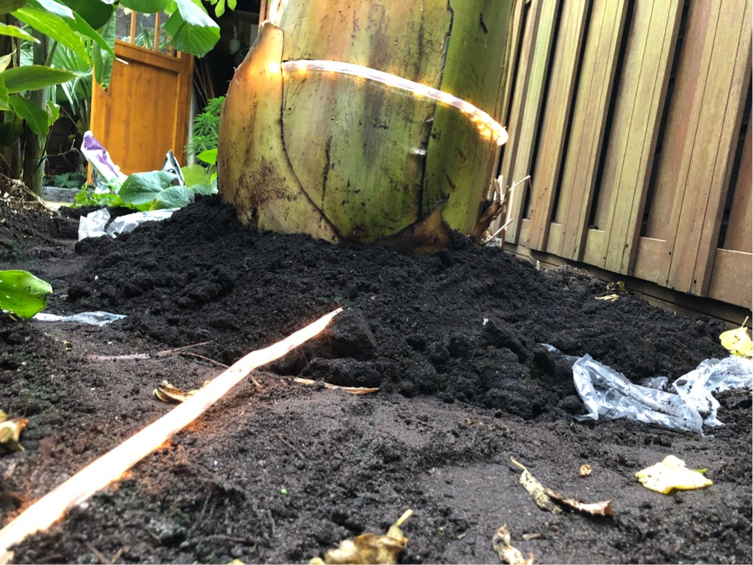 Heb je kunnen zien of er veel van de "voet"/rhizoom (of hoe heet dat bij bananen) is afgesneden? (lijkt niet zoveel)