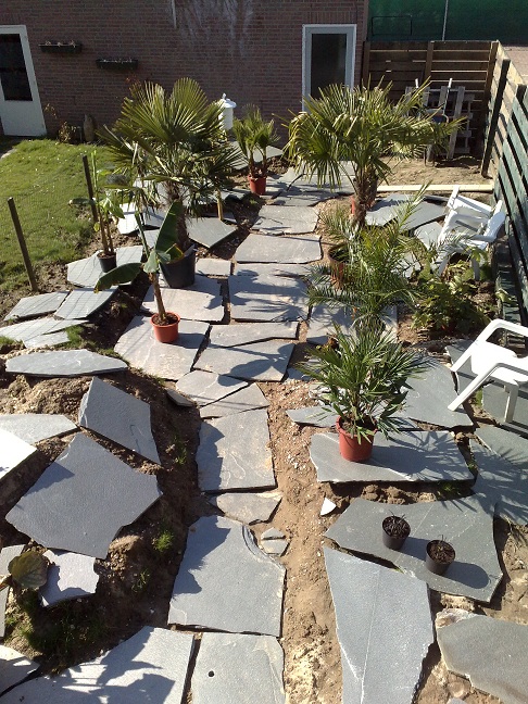Wel mooi hé, de grote tegels in combinatie met de exotische planten :)