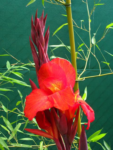 Een Canna met donker blad en rode bloemen heb ik ook wel. De naam weet ik niet maar het is geen Cleopatra en was hij dat wel dan zou ik toch alsnog een gestreepte gaan zoeken. Misschien dat een zwarte Cleopatra wat exclusiever is dan een gestreepte?