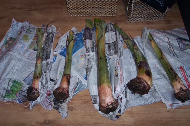 Ik heb vorige week mijn knollen uit de grond gehaald en er een beetje stekpoeder (wortelhormoon/stimulator voor zaden, stekken en knollen) aan gesmeerd.