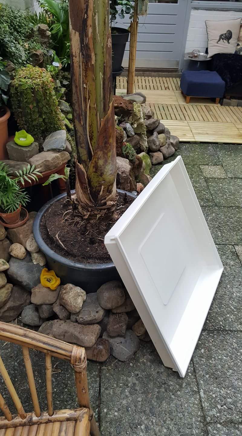 Volgende week gaat de banaan naar binnen om verder te rijpen. Lekbak is aangeschaft! :thumb_up: