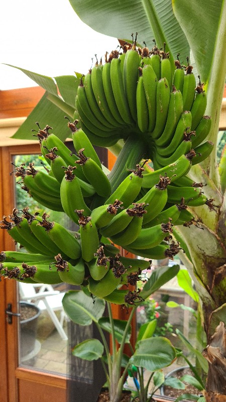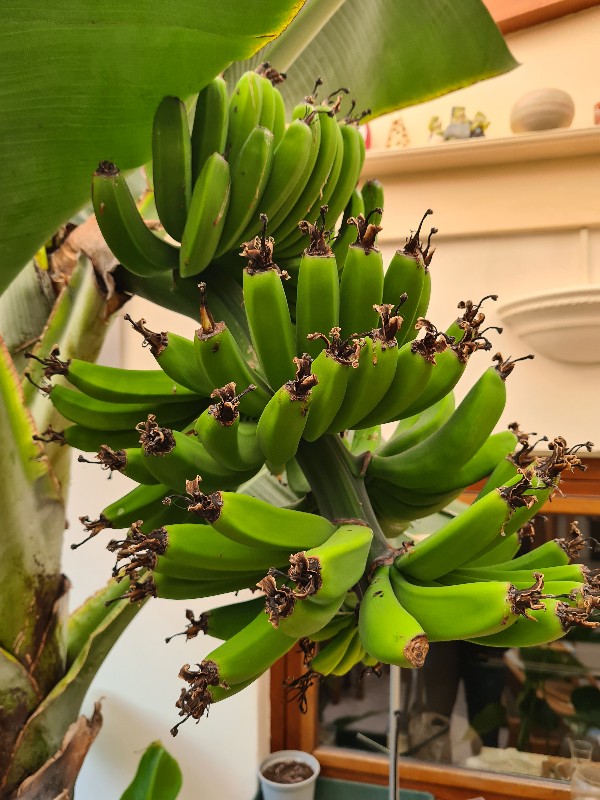 Richard, 104 vrouwlijke banaantjes uiteindelijk 8-) , ziet er vet uit in het holandia met inmiddels een eerste "nachtvorst" vanochtend -1,3C . Het zien van De tros went inmiddels en moet het spectaculaire steeds vernemen van onze bezoekers om weer te beseffen hoe speciaal het eigenlijk is ;) .