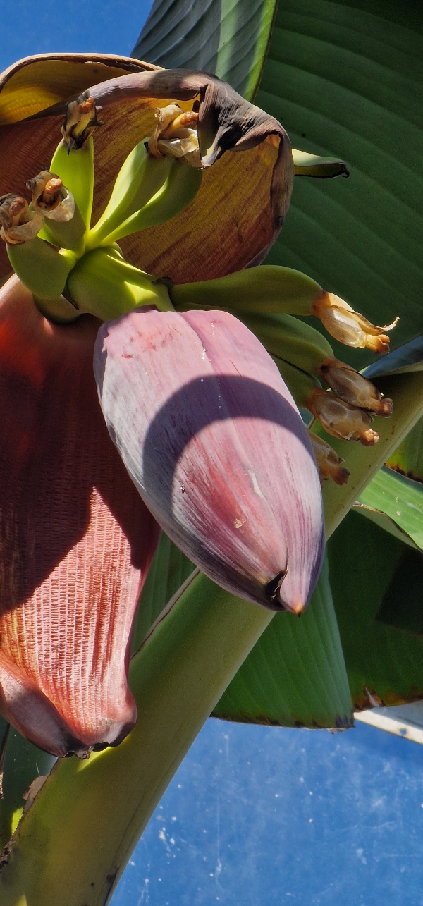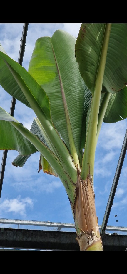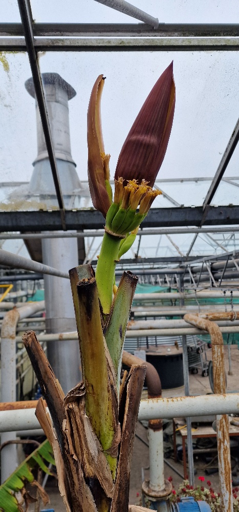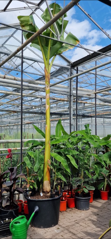 Helaas een super lange slechte lente gehad, banaantjes kwamen wel maar niet om verder te groeien, temperatuur, zelfs in de kas te laag gebleven.