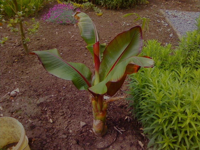Een Ensete maurelli is een subtropische banaan die echt maar aan de groei gaat als het boven de 18 graden is , veel water en mestof geeft. Buiten in de tuin kunnen ze in 1 jaar tijd met voldoende water en mestof aardig groeien , Zo kweek ik ieder jaar een paar exemplaren in mijn verkoopserre.
