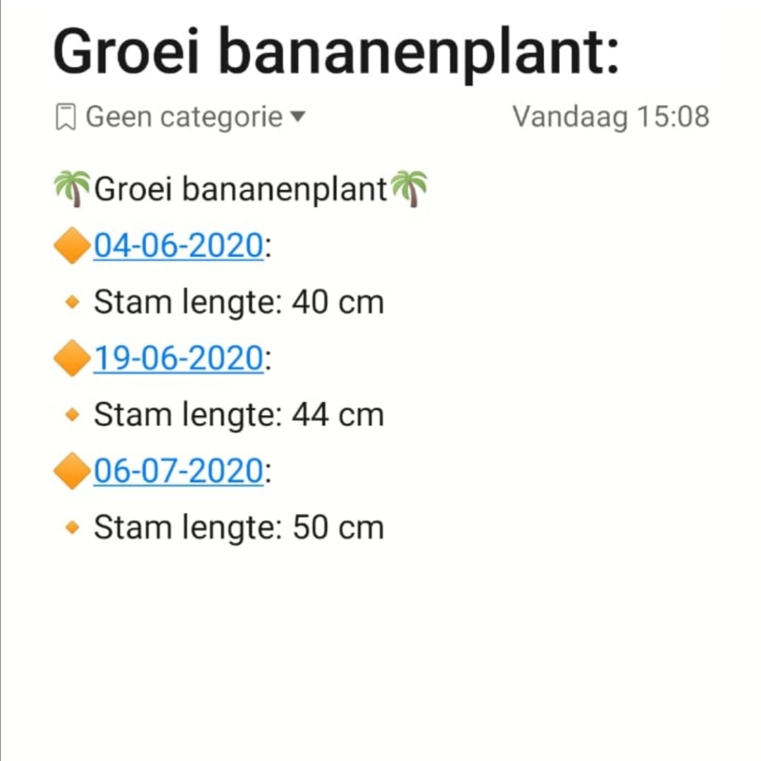 Je had voor je banaan geen betere tijd kunnen uitkiezen als deze week, redelijk matig zon zodat plant aan de licht intensiteit kan wennen zonder dat de bladeren verbranden. Ook ongedierte bestrijding is buiten niet nodig vanwege de hogere luchtvochtigheid,. En Niet twijfelen als je nu toch wat mindere groei gaat zien daar de nacht temperaturen niet zoals binnen in huis zijn maar vanaf Dinsdag als ook de nacht temp weer boven de 14C uitkomen zal je de Pstam langzaam dikker zien worden en iets minder de hoogte groei. Je plant wordt buiten sterker dus :thumb_up: , keep it going Eva!