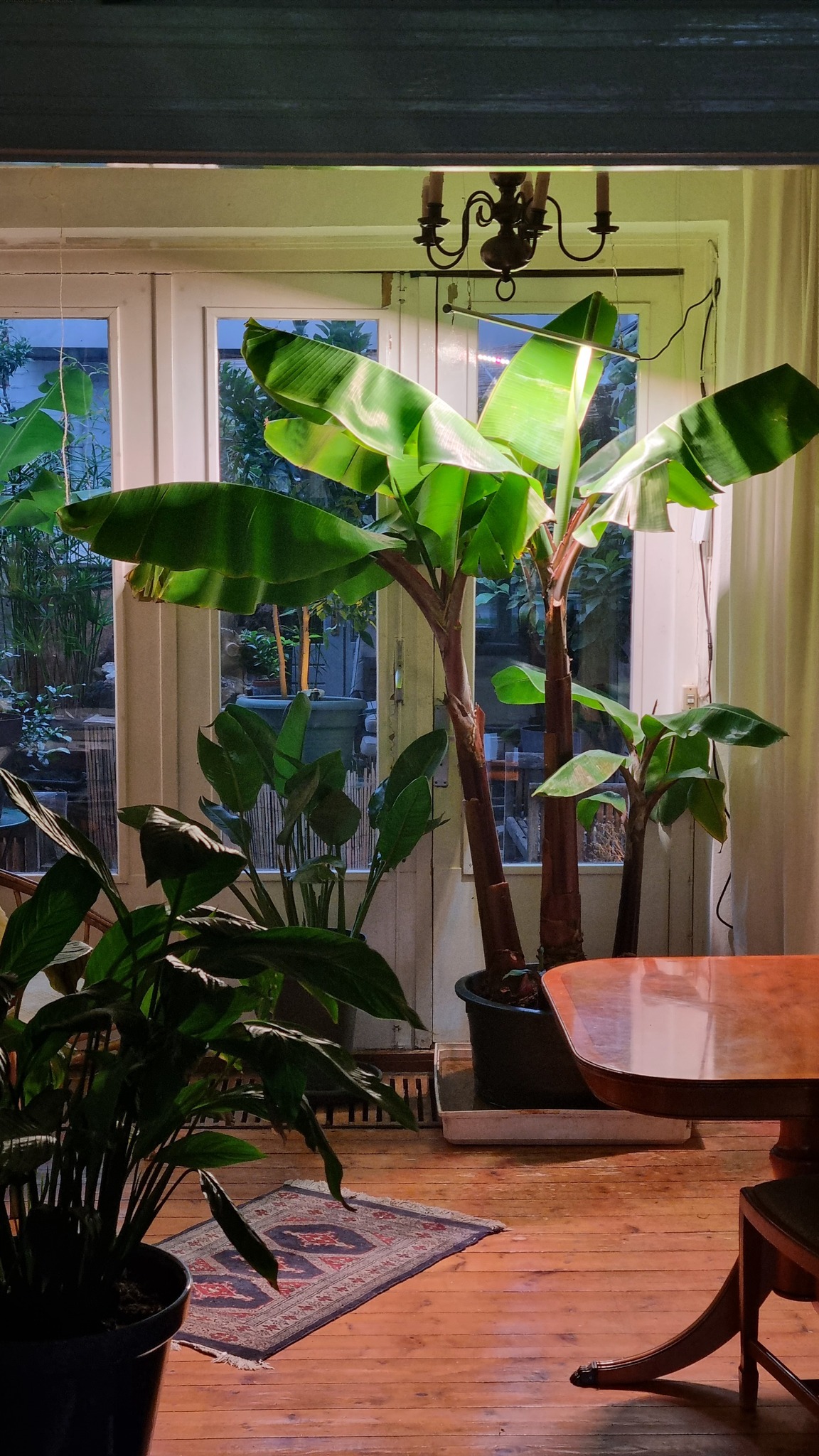 Zien er mooi uit die bananenplanten. Wel een aanwezigheid in je woonkamer, maar zoals je zegt, het heeft wel wat. Vol verwachting nu of er bloei gaat komen begrijp ik.