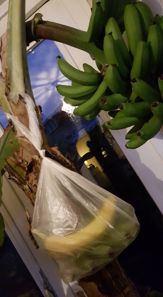 De bananen zijn goed gevuld en Rita Clarisse van Palmvrienden Facebook heeft mij eigenlijk nu zo nieuwsgierig gemaakt dan we het volgende hebben gedaan.