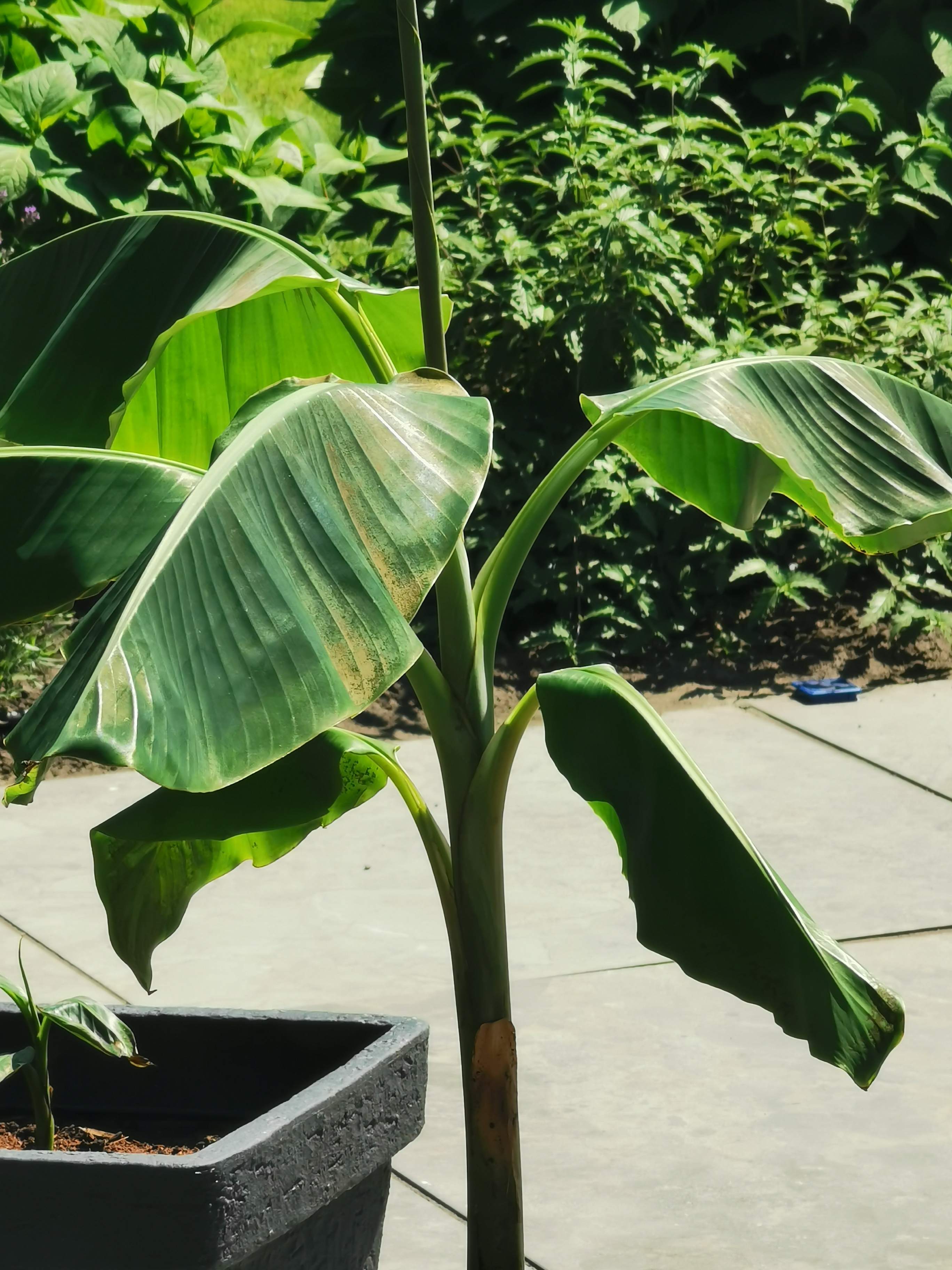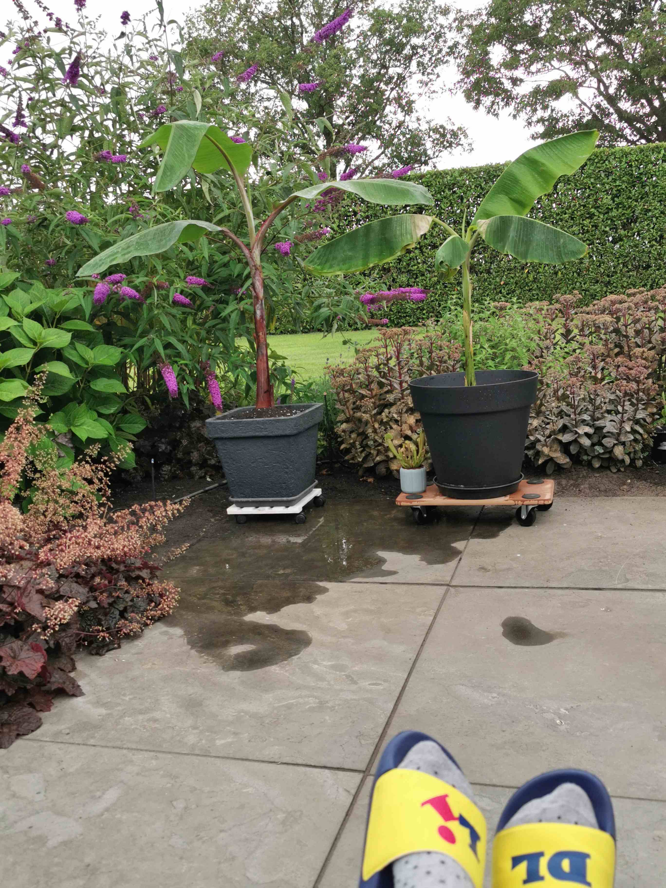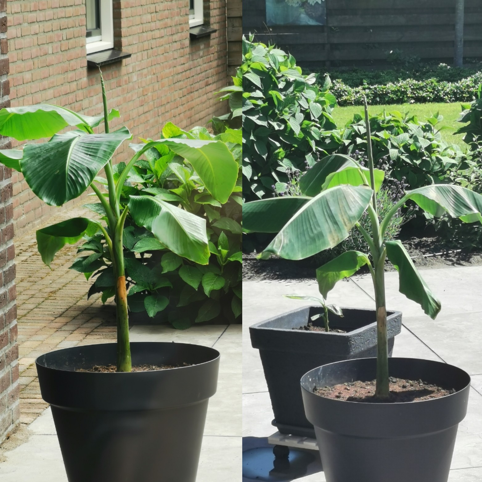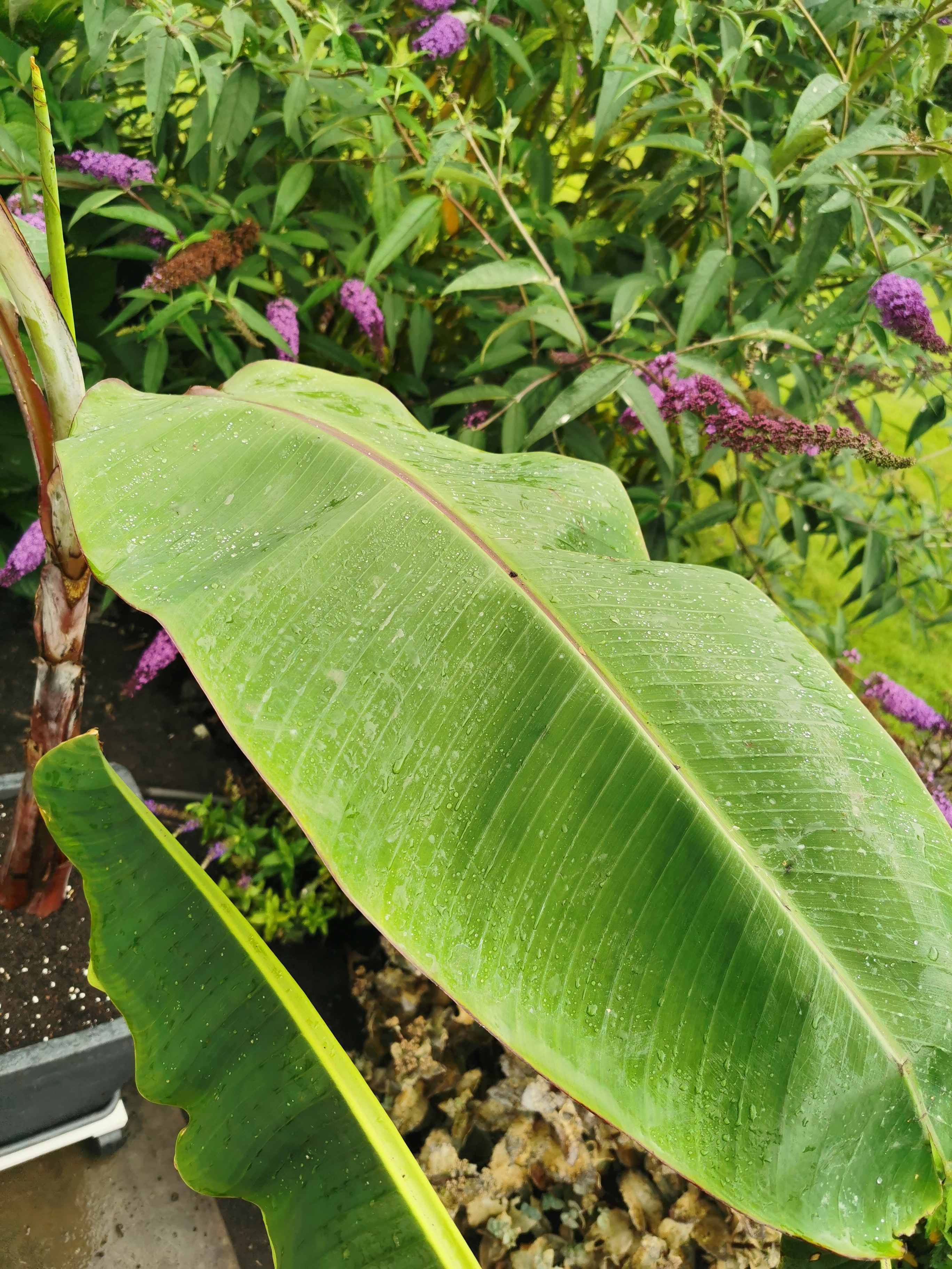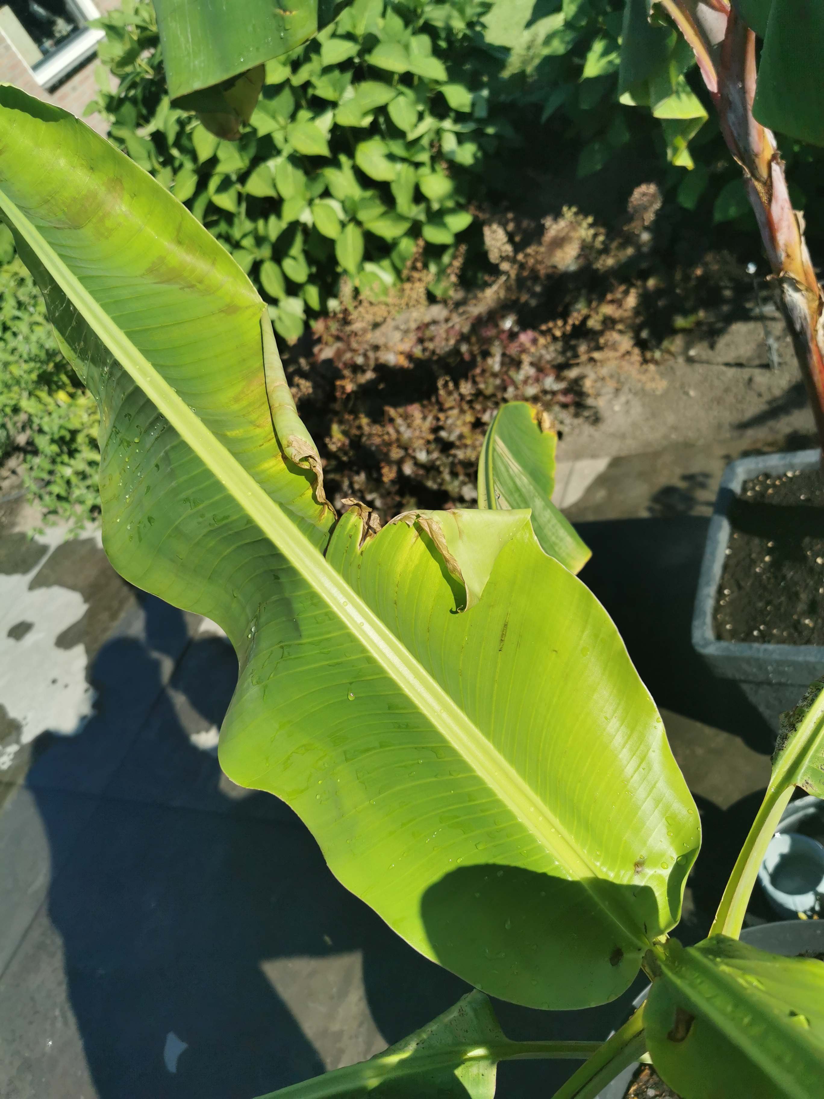 Dacht dat hij hier in de serre met vol zon ook veel licht kreeg, maar met buiten scheelt het toch wel wat. Hij heeft ook behoorlijk meer water nodig dan in de serre